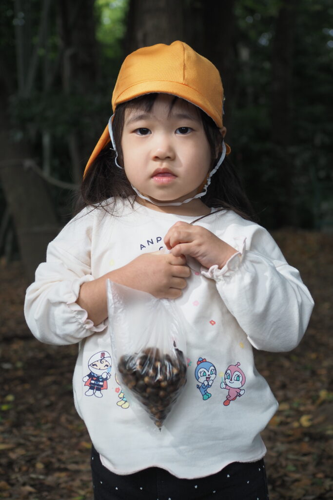 自分が集めた分だけ、袋の中にドングリが増えていくことが、嬉しいのですよね。