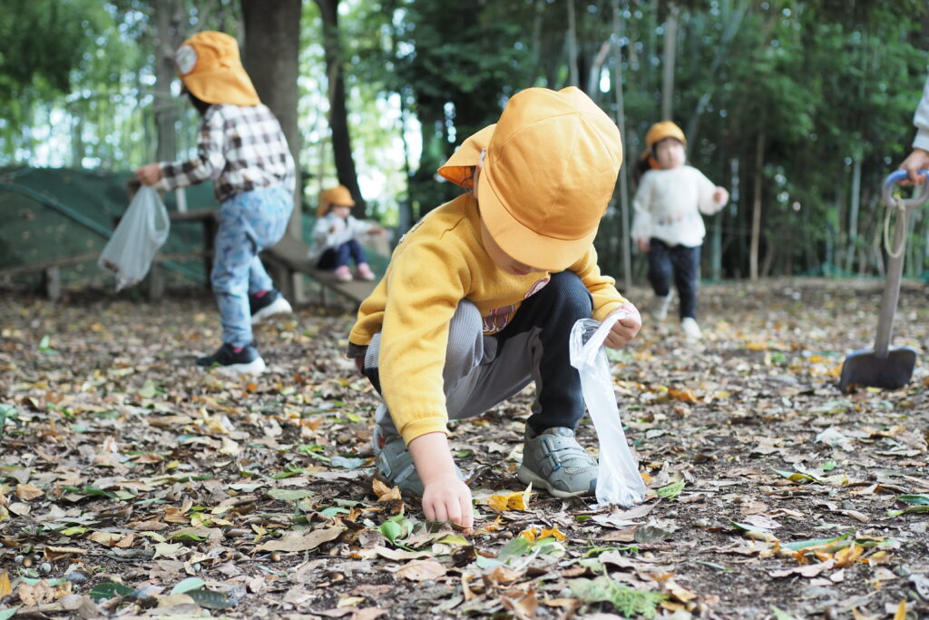 みかん組の子どもたちが裏山でドングリを拾っていました。