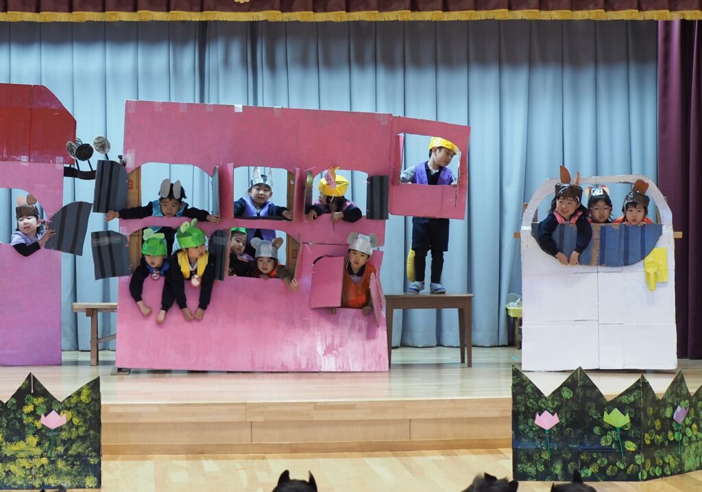 年長・年少組が2月の1週目、年中組が2月の3週目に劇の会がありました。