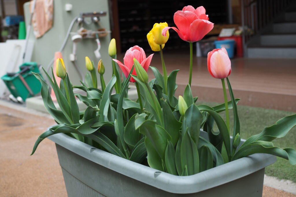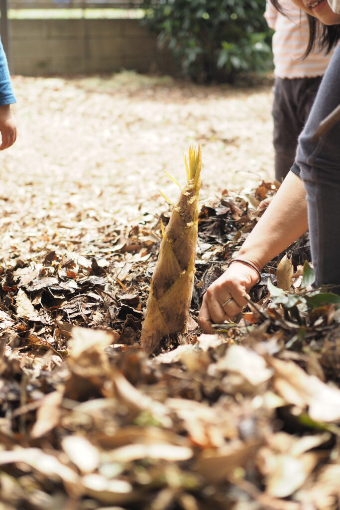 園庭では年少さんが植えたチューリップがキレイに咲き、裏山ではタケノコが芽を出しています。