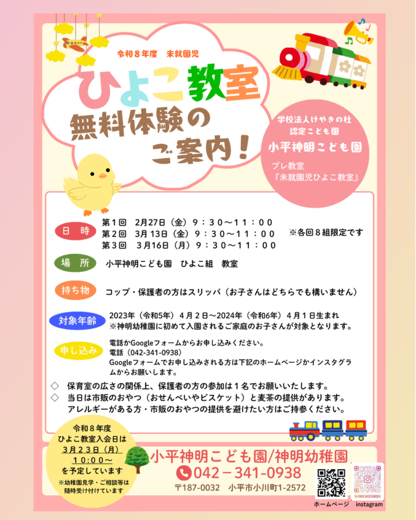※神明幼稚園に初めて入園されるご家庭のお子さんが対象となります。