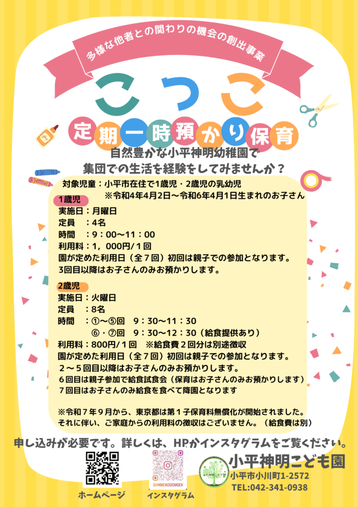 ※令和7年9月から東京都は第1子保育料無償化が開始されたため、保護者の方からの利用料徴収はございません。(給食費は別)