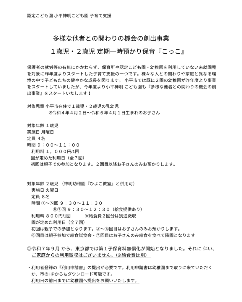 ※令和7年9月から東京都は第1子保育料無償化が開始されたため、保護者の方からの利用料徴収はございません。(給食費は別)